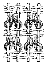 Formed by looping the pile yarn across two warp strands and then drawing each end back through the inside of both warps. This “symmetrical knot”. as it is often called, produces extremely compact rugs. It is used almost exclusively by Caucasian and Anatolian weaving groups and also by several in Persia, particularly in the north west of the country. There is no foolproof way to determine if a Turkish knot has been used, but a fair indication can be obtained by looking at the back of the rug. If two loops or bumps are visible across the warp on which the knot has been tied, the Turkish knot has probably been employed.