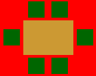 Here is a scaled graphic of a red dining room, Mahogany dining table, and six to eight chairs. The dining table measures a standard 42 x 92 inches. Note that if the rug measures 8 x 10 feet (at least size), there is room to pull the chairs out from the table with the back legs of the chairs remaining on the rug. If the back chair legs go off the rug, it’s difficult to sit down and scotch the chair into the table while simultaneously lifting the back legs (as shown in the two pictures below).